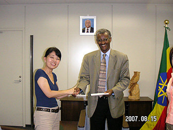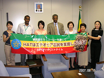 8月15日午後、HAT会員有志5名が、在日エチオピア大使館(東京都港区高輪)を訪問して、アブディラシッド・デゥラネ駐日大使、ゲタッチョ二等書記官と面会、洪水支援の寄付金を直接手渡しました。