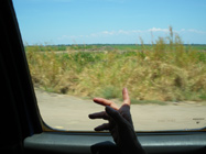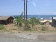 車はあまり走っていません。時折、サトウキビや木材などを満載した大型トラックとすれ違う程度です。道路沿いには電線が走っているので、電気は来ているようです。首都に近いエリアではTVアンテナも見つけました。しかし目的地に近づくほど、家々は日干し煉瓦の上に枯れ草を積み重ねた粗末なものになり、小さい集落が点在していました。