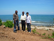 11月18日、朝7:00ホテル出発。リロングウェからムズズまで486q。通常、車で北に4時間半ほどの行程ですが、途中私達の2日半のムズズ訪問に同行いただく、同組合Planning DirectorのMr. Kaunda氏(カウンダ氏)を拾うため、幹線道路を東に曲がり、マラウィ湖の方向に1時間ほど走った湖畔のホテルに立ち寄りました。広大に波寄せるマラウィ湖は、まるで海のように水平線まで広がっています。色鮮やかなジャガランダの花が咲き乱れていました。