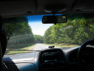 幹線道路と湖の間の緑地に、金属性の細いパイプが横に延びていて、太陽に輝いて見えます。そしてその一帯の作物はひときわ鮮やかな深い緑色です。同乗のカウンダ氏によると、それはタバコ栽培畑で、近年タバコ栽培小規模農家が力を合わせて、灌漑設備を導入したとのことでした。やがて、平地から山道に変わると、道の両脇はうっそうと群生するゴム森林や杉木立などが数百メートルも続き、悠然と広がる大自然に圧倒されました。