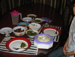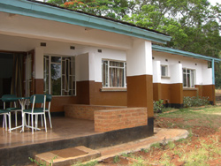 宿は本部から車で10分ほどのMzuzuプロパティであるゲスト・ハウスの一棟です。若い管理人夫婦が夕食を用意してくれました。メニューは鳥手羽肉の香り焼きと、現地の人達の主食“シマ(トウモロコシの粉をこねて蒸かした、餅のような食感)”、それと麦茶のように薄いコーヒーです。「あーっビールが飲みたい!」と同行者。テレビもなく、聞こえるのは鳥の声と、時折遠くで響く雷の音のみ。静寂に包まれた一夜を過ごしました。 |