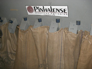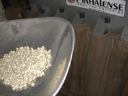 B 袋単位に、生産した組合名と豆のランクを示すラベルが貼り付けられます。