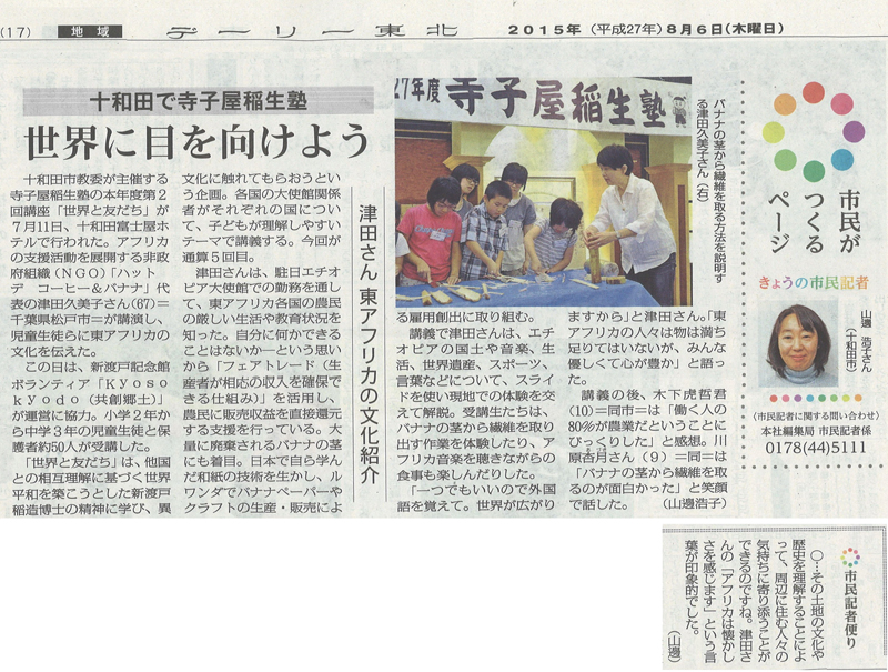 寺子屋稲生塾の模様が「デーリー東北 8/6付」に紹介されました。