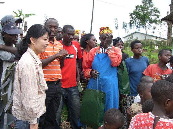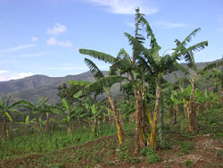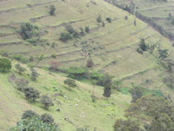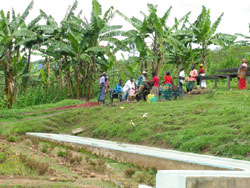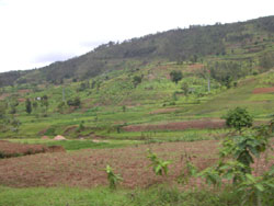キガリ市内を抜けると、豊かな緑が大地を覆い、山々は頂上まで隙間無く開墾されていて、農民の勤勉さが伝わってきます。雨のせいでしょうか、アジアの風景にどこか似ているような感じもします。 |