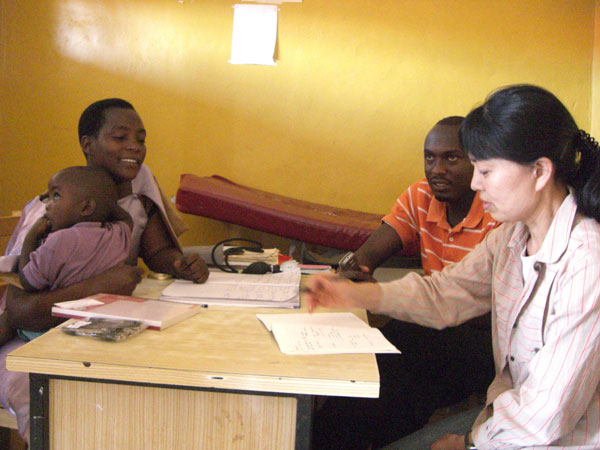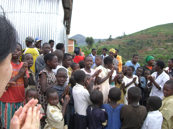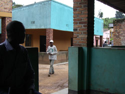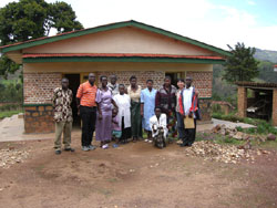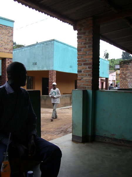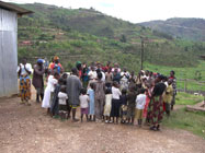 ステーション近くの、Rushoshi保健センターを訪問しました。急に立ち寄ったにも関わらず、責任者のMukabandora Jeannetteさんは、快く応対してくださいました。オープンしてより現在まで、17,203人の人達を診てきたとのことで、但し深刻な病人は16q先にある、ルーリー・ホスピタルに運ぶのだそうです。現在看護婦6人、ボランティア1人、ソーシャル・アシスタント1人、そして助産婦6人の計14人が働いています。毎年各家庭から集める1,000フラン(約2ドル)が運営資金となりますが、それではとても足りないと訴えていました。確かに室内には分娩台のようなものがあるだけで、その他の医療器具や薬品など何にも有りません。「包帯などはあっても品質が極端に悪い。」とのことでした。帰り際に支援を強く要請されました。 |