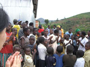 保健所からステーションに戻ると、女性や子供たちが円陣を組み、手をたたき、歌に合わせて踊りながら、歓迎セレモニーが始まっていました。日本から持参したスカーフや文房具に対する感謝の思いを、歌と踊りに託しているとのことで、ドレスアップした女の子達もいます。婦人の代表による歓迎と感謝の言葉、そして私の挨拶のあと、“ウーメンズ・アソシエーション”の代表者 Kostagiさんに、お土産を手渡しました。彼女は満面の笑顔で喜びと感謝を表現されましたが、彼女の顔に刻まれた深い皺に心が痛みました。 |