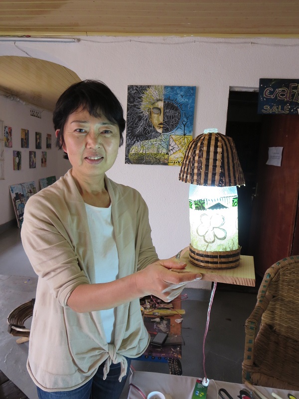 アーティスト達は、自らバナナペーパーの品質向上に真剣に取り組んでいて、スタジオ内あちらこちらに、BPランプシェードが置かれ、彩を添えています。購入者へは、例え遠方であっても、しっかりとした箱詰めで送る用意も整えられていました。