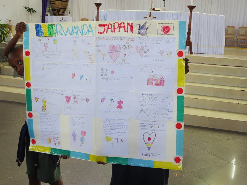 日本人の参加者はあまり多くはありませんでしたが、参加した子供達は、大震災の事を、被害者・被災者の事を事前に学び、「Japan・Rwanda」と書かれた大きなパネルを掲げて祈っていました。パネルには、被災地の子供に寄せられる思いが、可愛く描かれていて胸を打たれました。他のルワンダ人達も、私たち日本人に優しい眼差しを投げかけ、祈りを捧げる姿に、彼らの優しさそして思いやりを、あらためて感じました。
