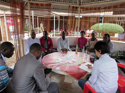 学校側から校長他役員、紙作りを教える地元キブンゴのスタッフ、そしてBPクラフト製作を担当するキガリのアーティスト達、それにプロジェクトの実施責任者の私とが、ホテルの一角で一同に会しました。